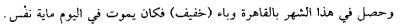 | 1348-04-00-Egypt | April 1348 JL | The Black Death in Egypt and other countries in 749 H (April 1, 1348 to March 22, 1349): People were taken by surprise by the epidemic (wabāʾ) whose death toll was high. The odors of death met them. People died quickly of the disease after buboes had appeared at their earlobes (marrāq). | al-Nuwayrī - Kitāb al-Ilmām 1968-1976, vol. 4 (1970), pp. 126-127; 143. | Translation needed | ||