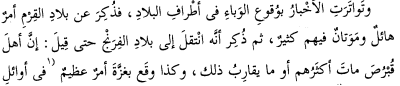 In this year (1178/1179), the country had a general shortage, followed by a general epidemic. | Ibn Faḍl Allāh al-ʿUmarī - Masālik al-abṣār 2001-2004, vol. 27, p. 117 | Translation by Thomas Wozniak |
